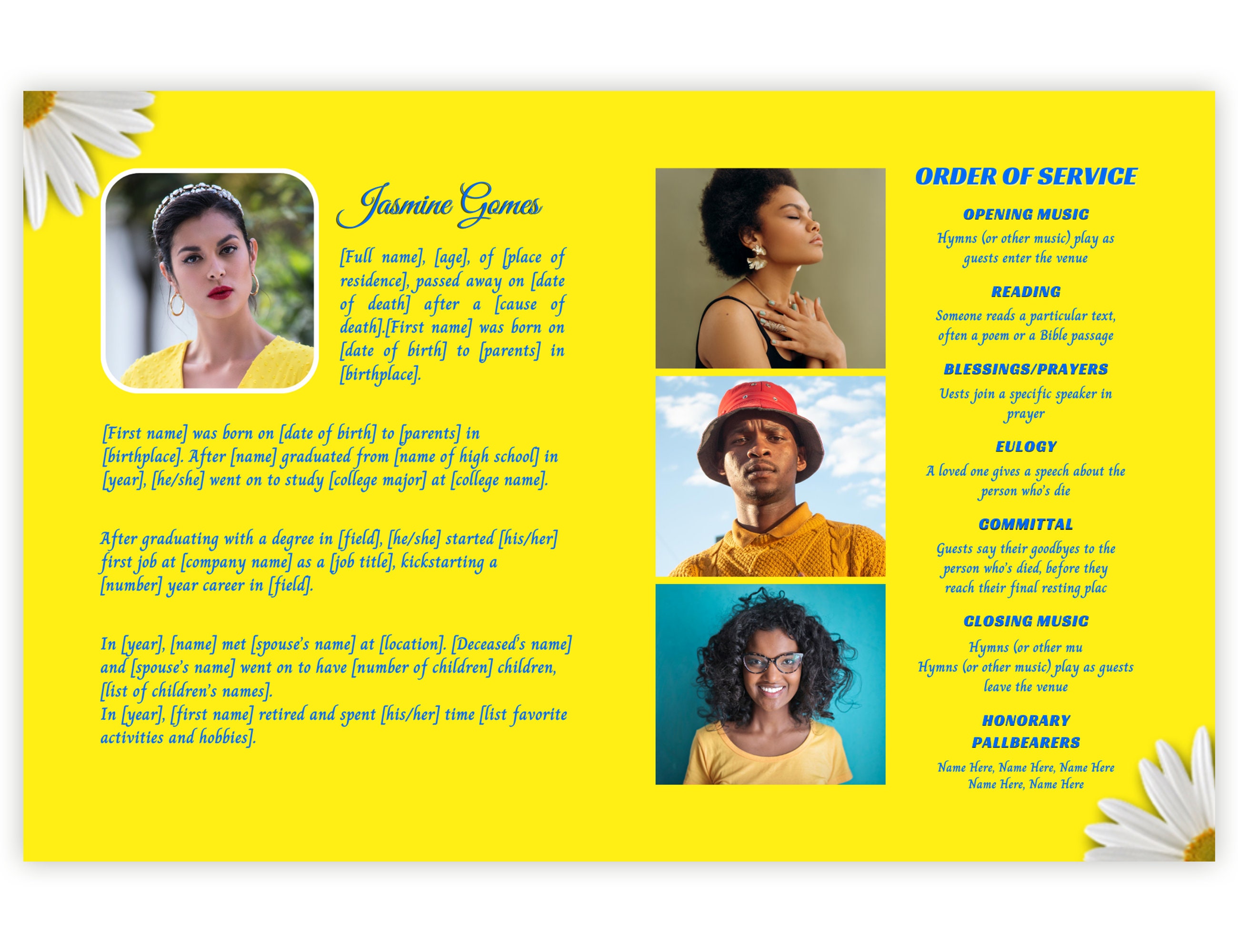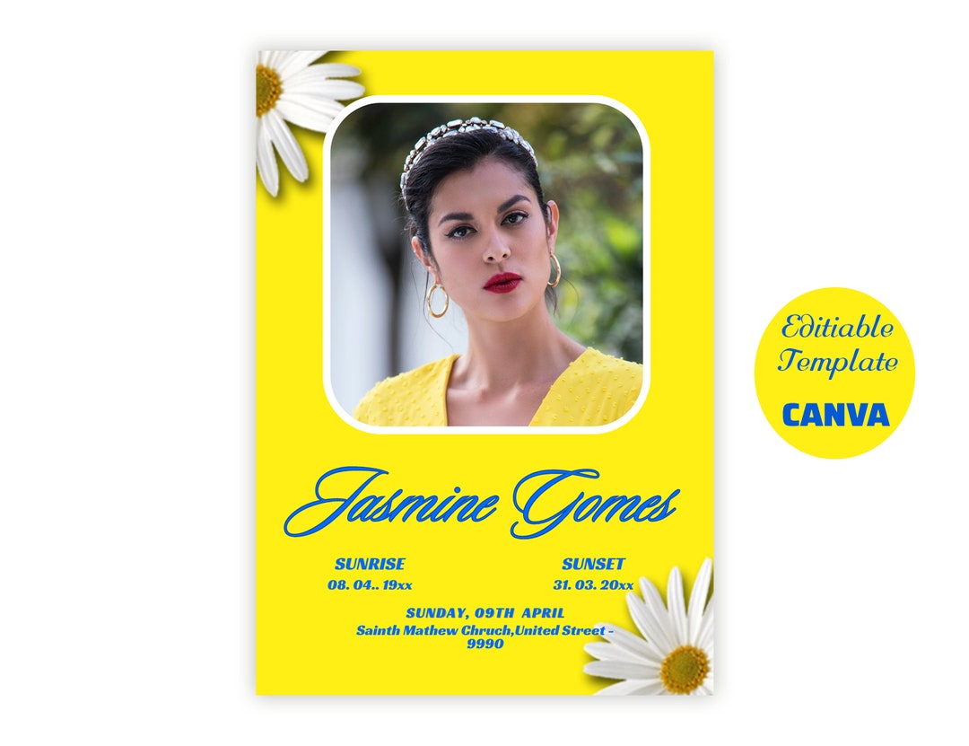 4 Pages Funeral Program Template Editable in Canva Yellow Etsy