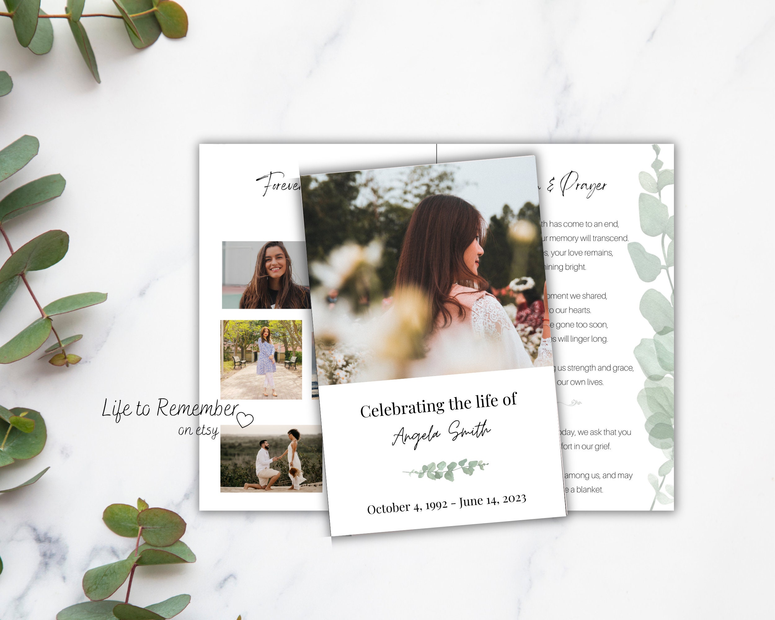 8 Pages Funeral Program Template Editable in Canva Obituary Etsy