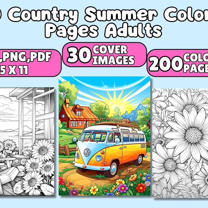 Coloring Pages Summer Vibes Etsy UK
