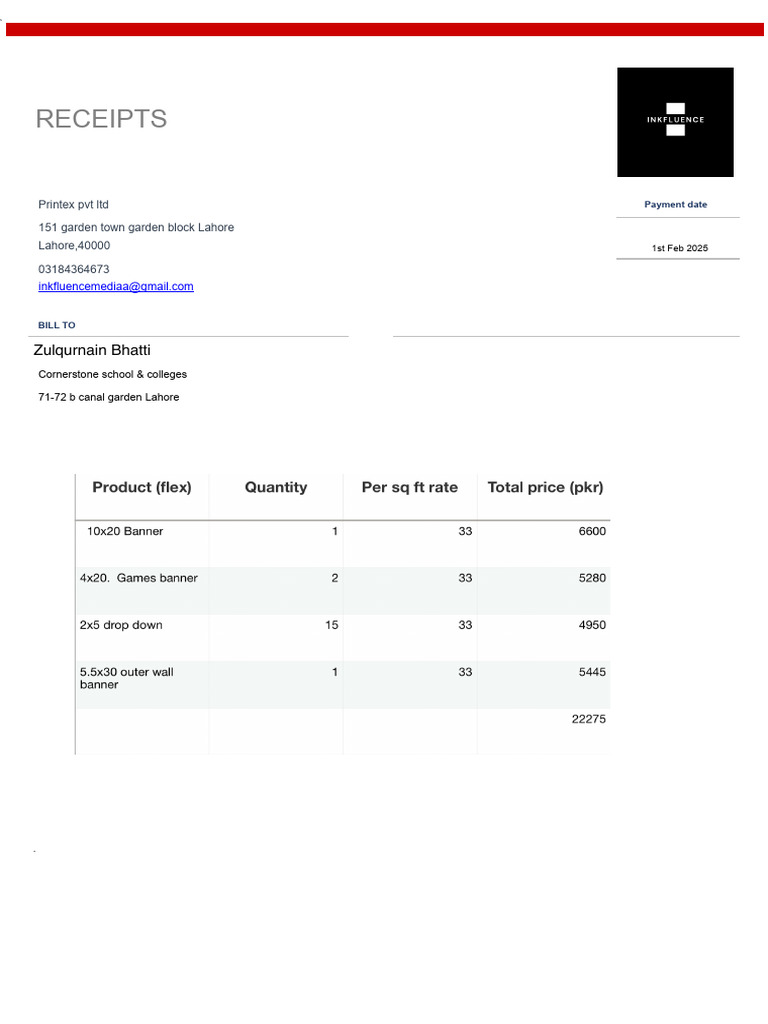 Receipt Template PDF