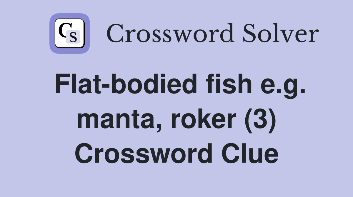 Flat bodied fish e g manta roker (3) Crossword Clue Answers