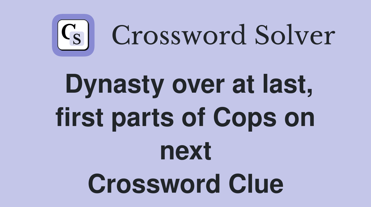 Dynasty over at last first parts of Cops on next Crossword Clue