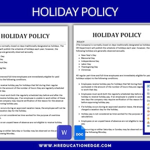 Holiday Policy Template Editable HR Form Human Resource Form Employee