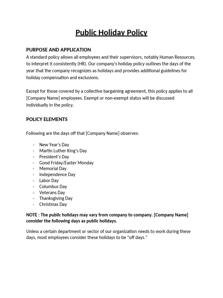 Company Holiday Policy Template