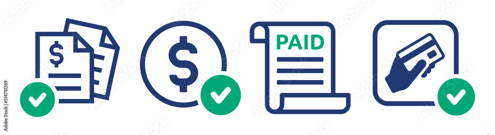Paid icon vector set illustration Dollar payment symbol with document