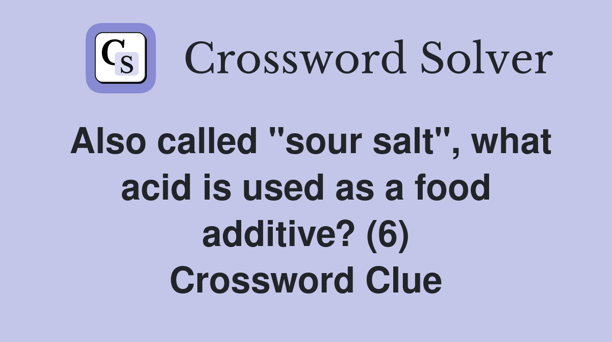 Also called quot sour salt quot what acid is used as a food additive? (6