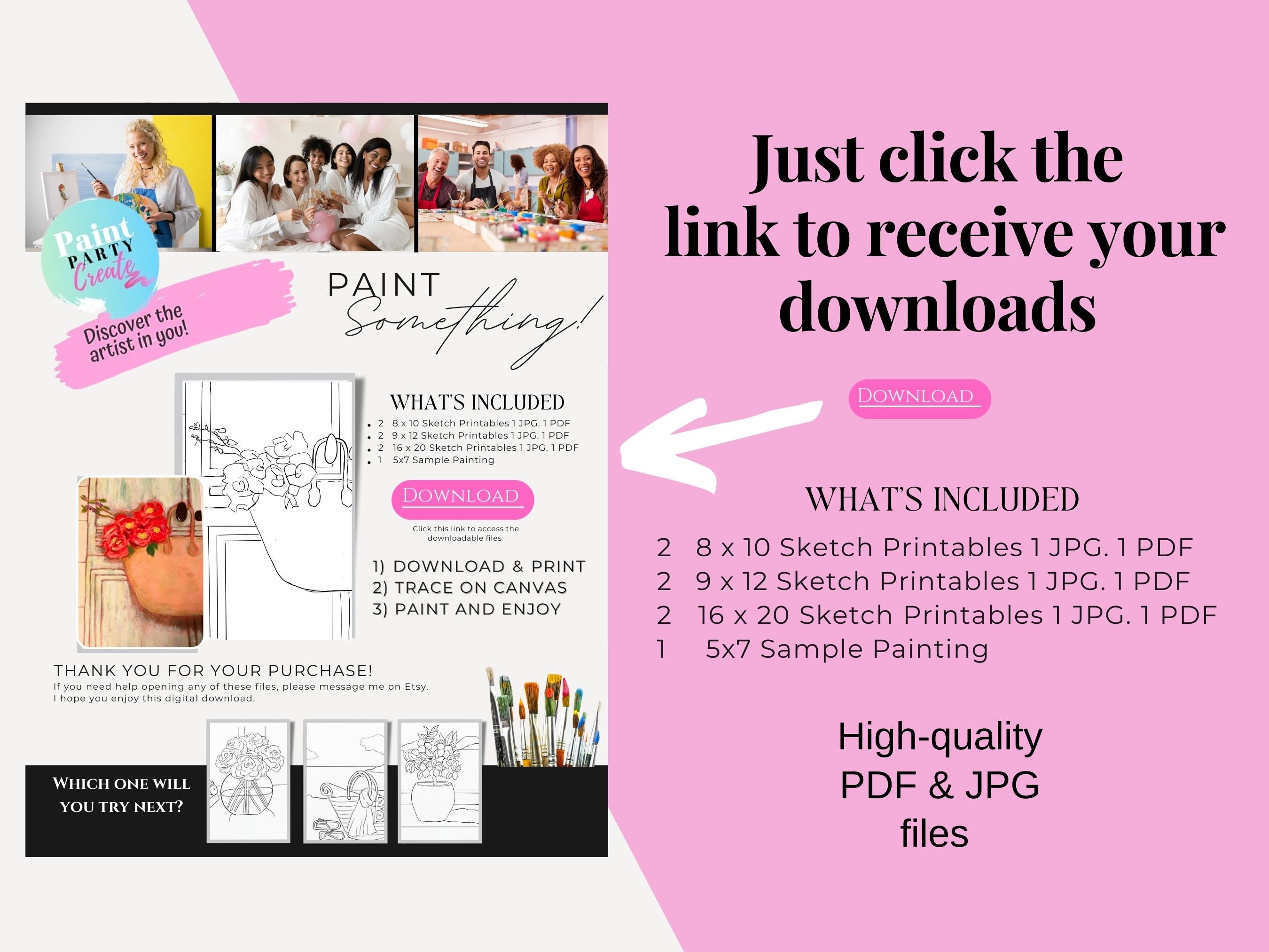 PAINT PARTY PRINTABLE/ Paint Party/ Pre drawn/outline Canvas/ Paint