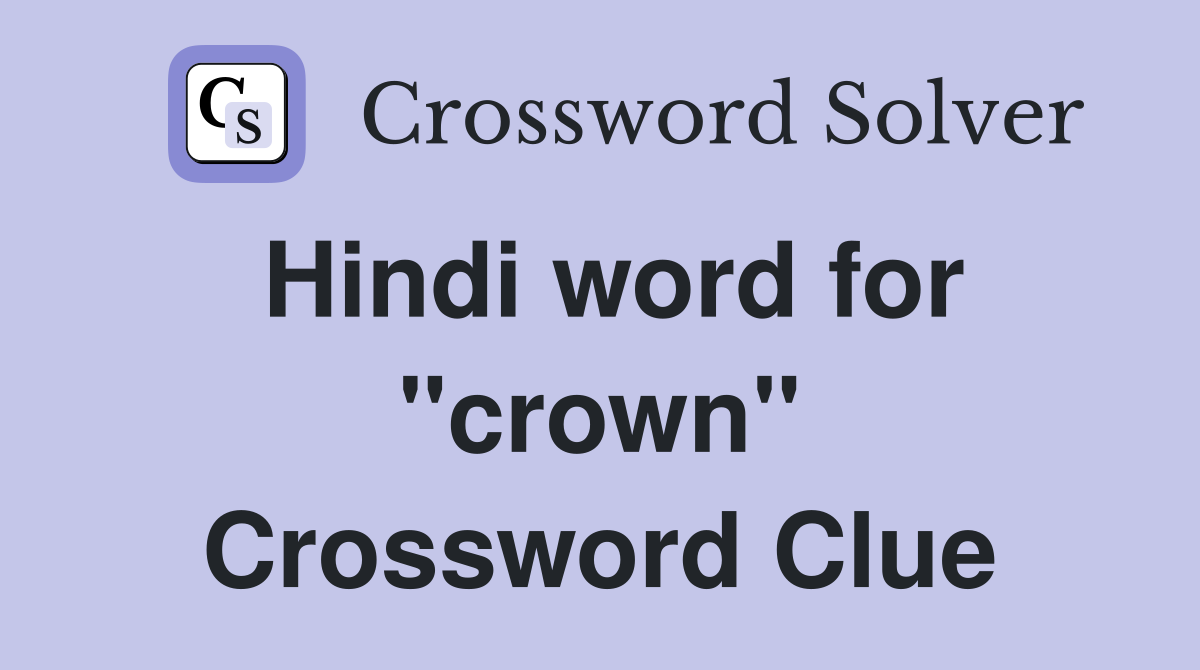 Hindi word for quot crown quot Crossword Clue Answers Crossword Solver