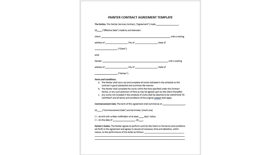 Painter Contract Template prntbl concejomunicipaldechinu gov co