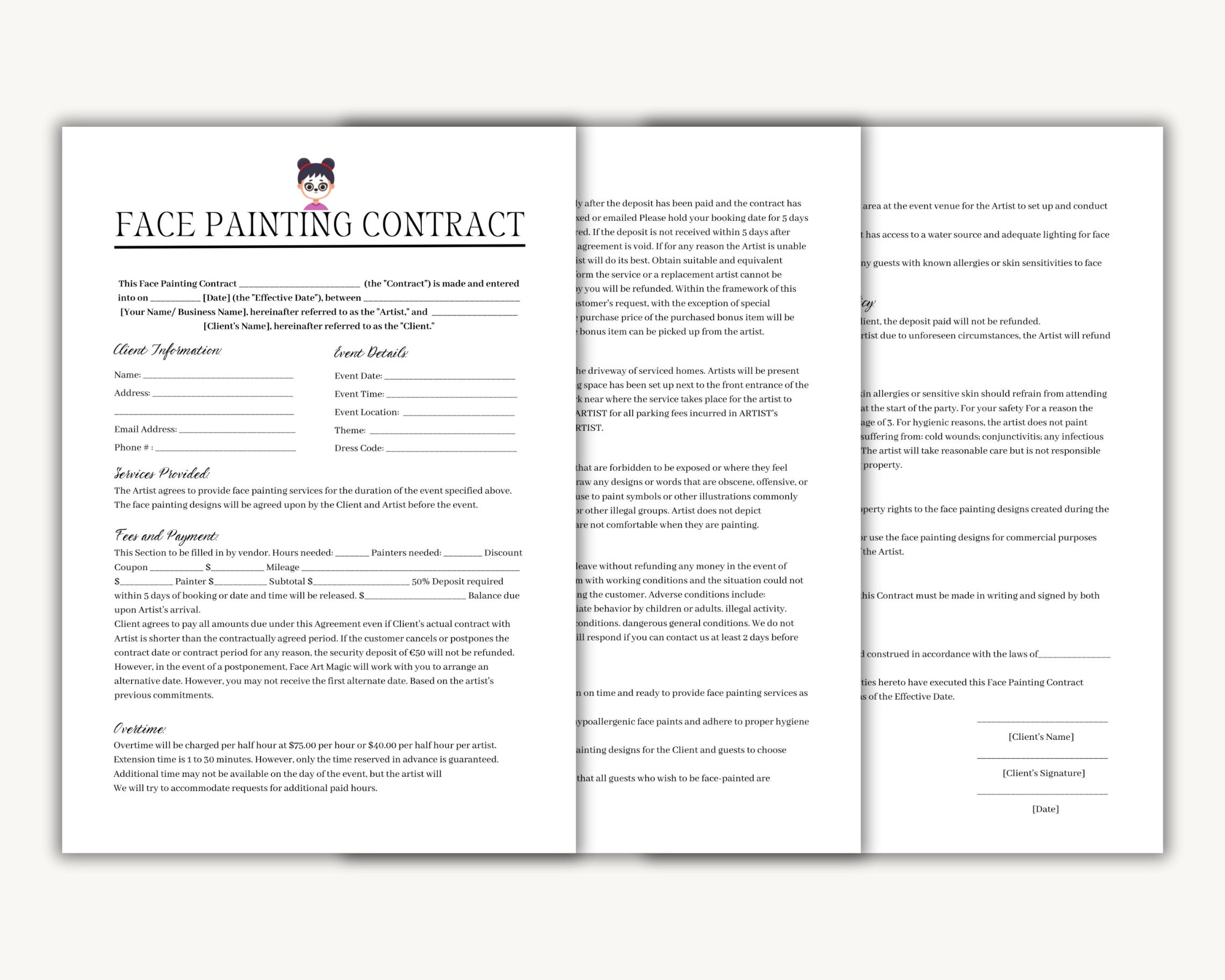 Face Painting Contract Agreement face Painters Client Event Kit Face