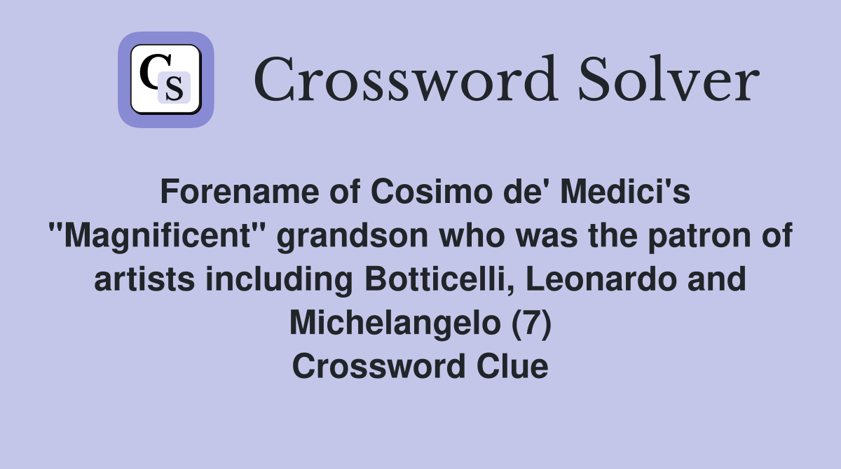 Forename of Cosimo de #39 Medici #39 s quot Magnificent quot grandson who was the