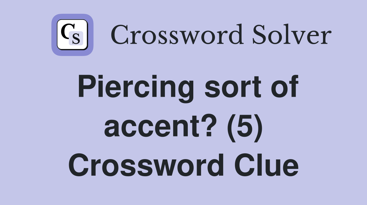 Piercing sort of accent? (5) Crossword Clue Answers Crossword Solver