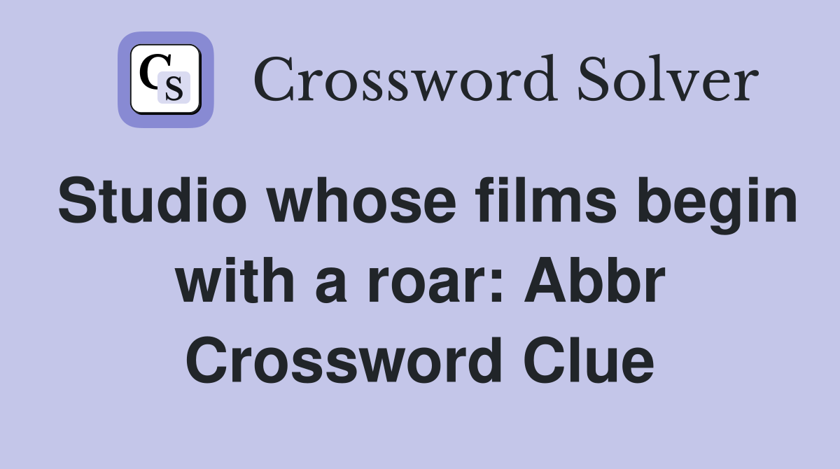 Studio whose films begin with a roar: Abbr Crossword Clue Answers