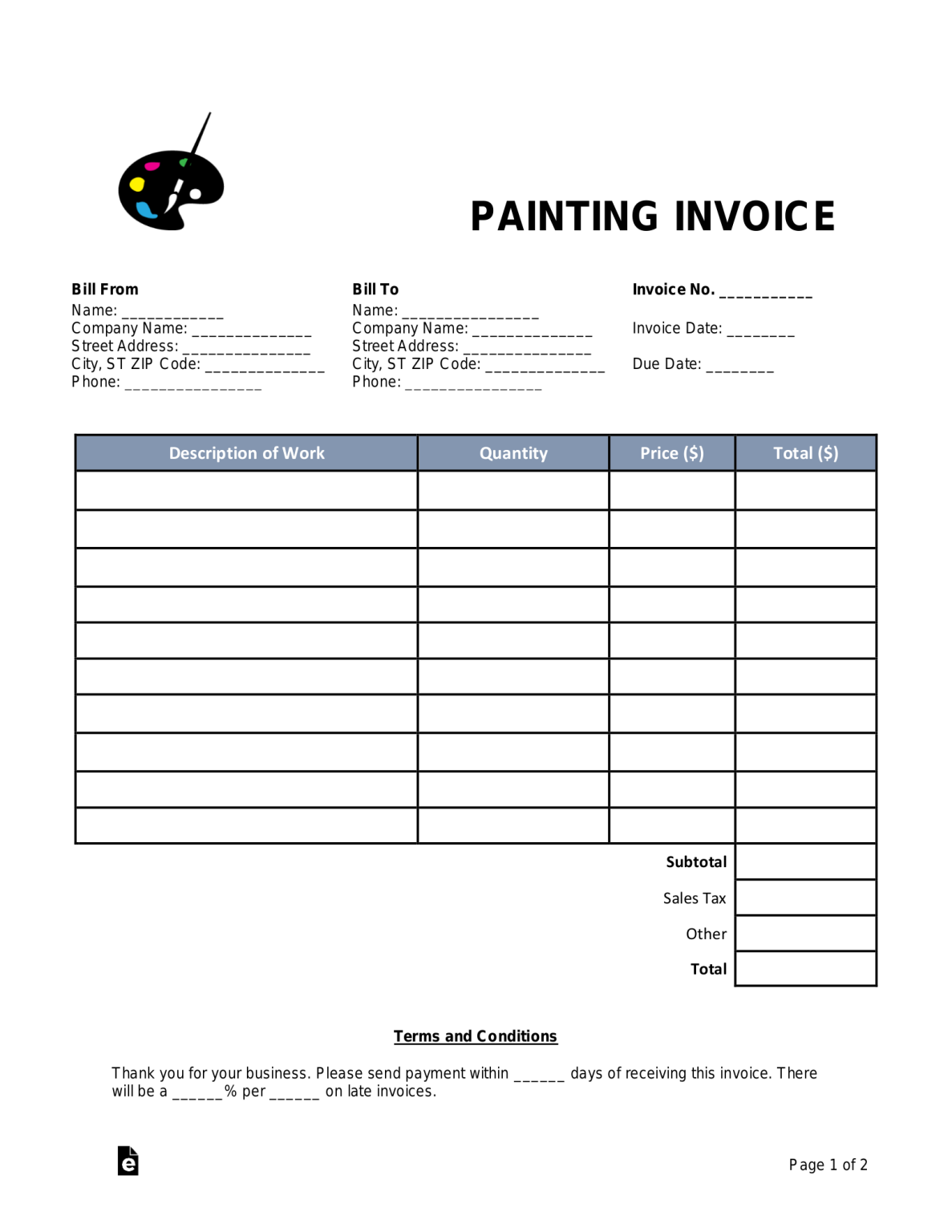 Free Painting Invoice Template PDF Word eForms