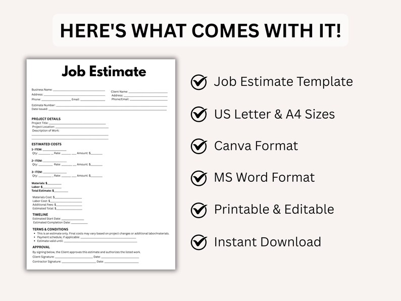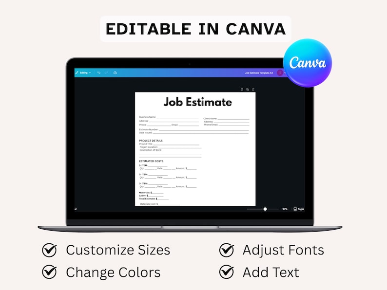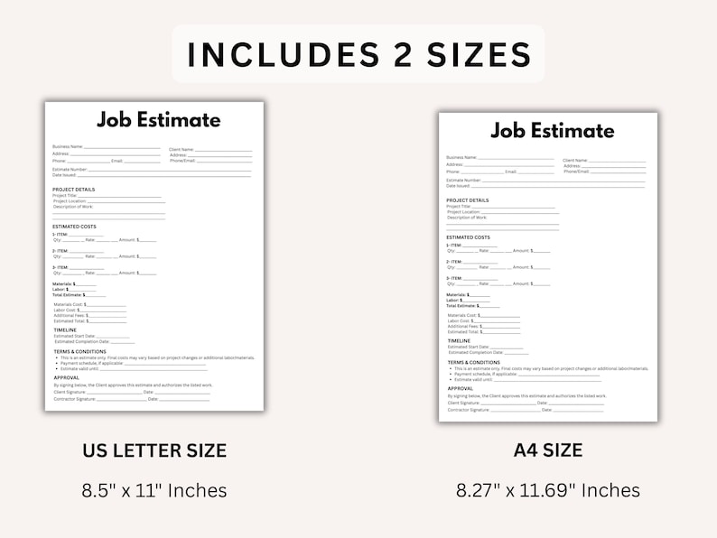 Editable Job Estimate Template US Letter A4 (canva Word PDF) Etsy