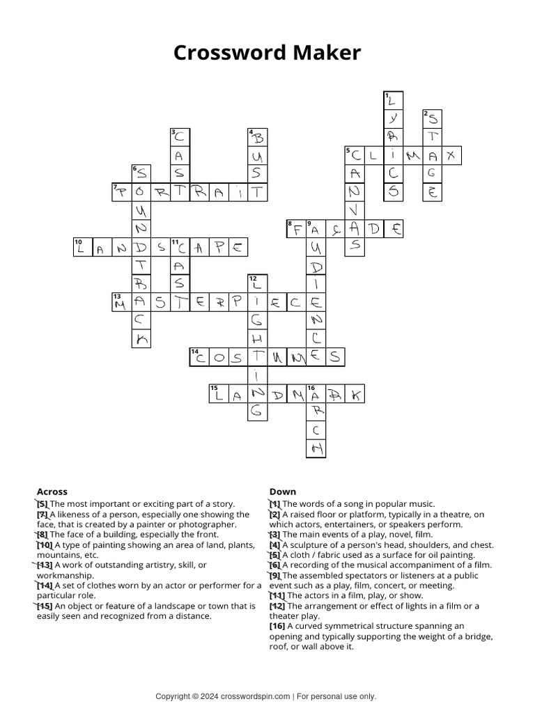 Only Crossword PDF Paintings