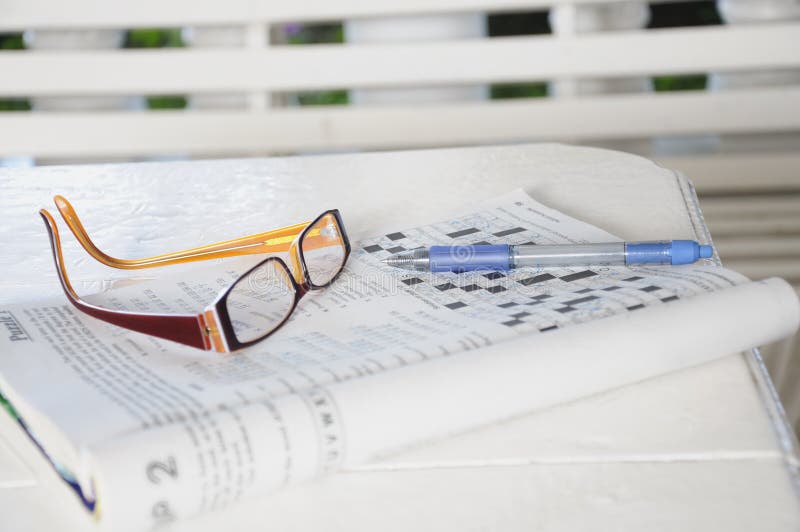 Crossword Puzzle pencil and Reading Glasses Stock Image Image of