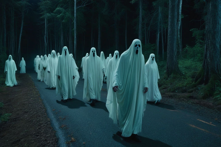 Haunting Pale White Spectre Ghost Rising from Black Mirror · Creative