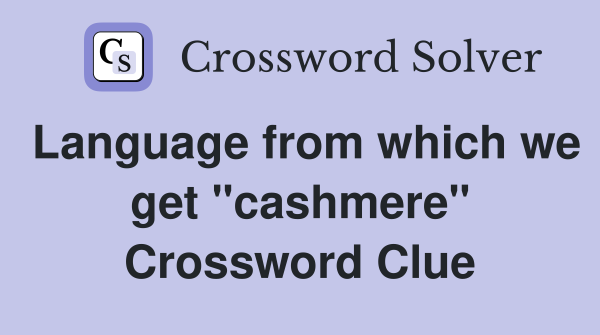 Language from which we get quot cashmere quot Crossword Clue Answers