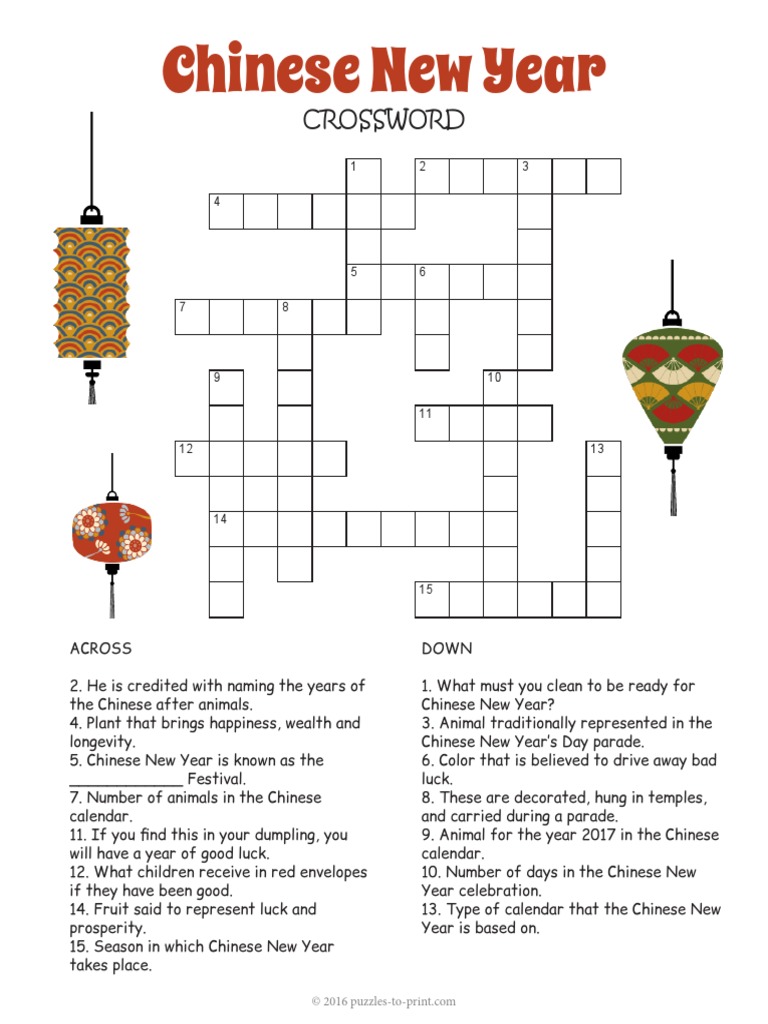 Chinese New Year Crossword Puzzle Printable Free Printable Crosswords