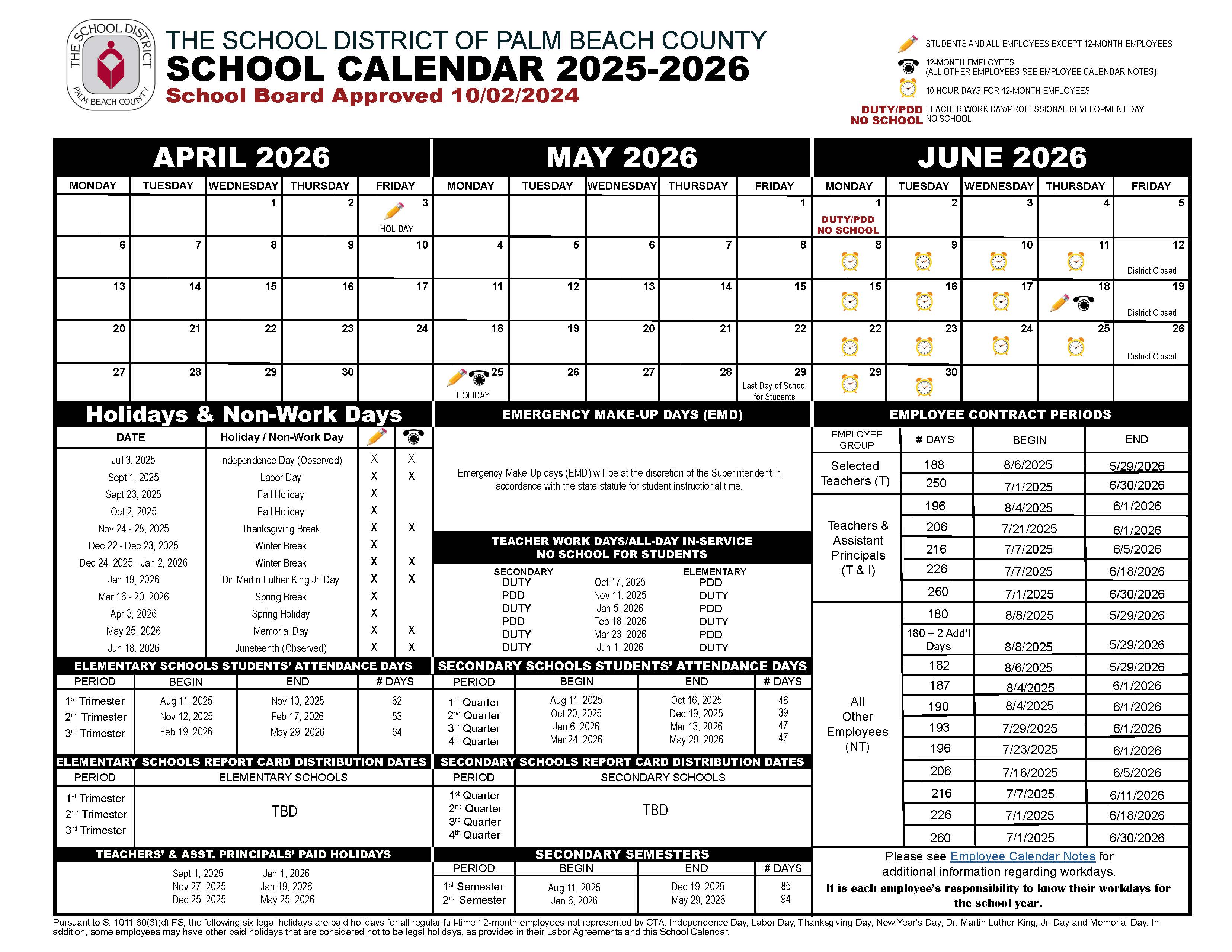 2025 2026 Palm Beach County District School Calendar