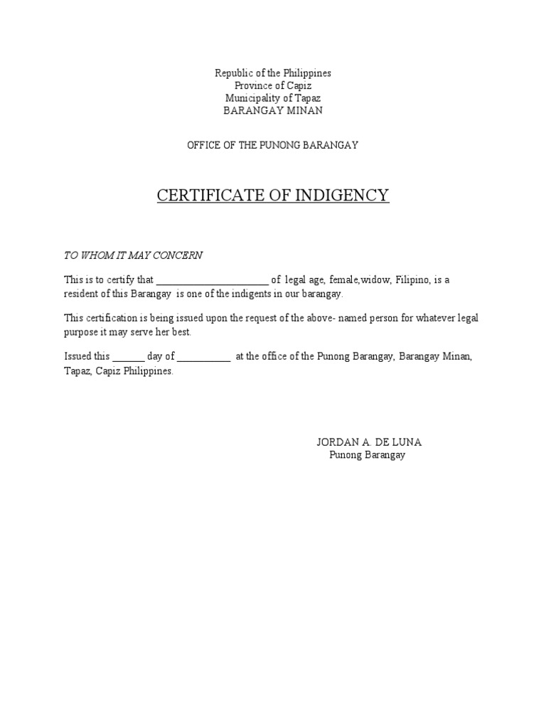 Certificate Of Indigency prntbl concejomunicipaldechinu gov co