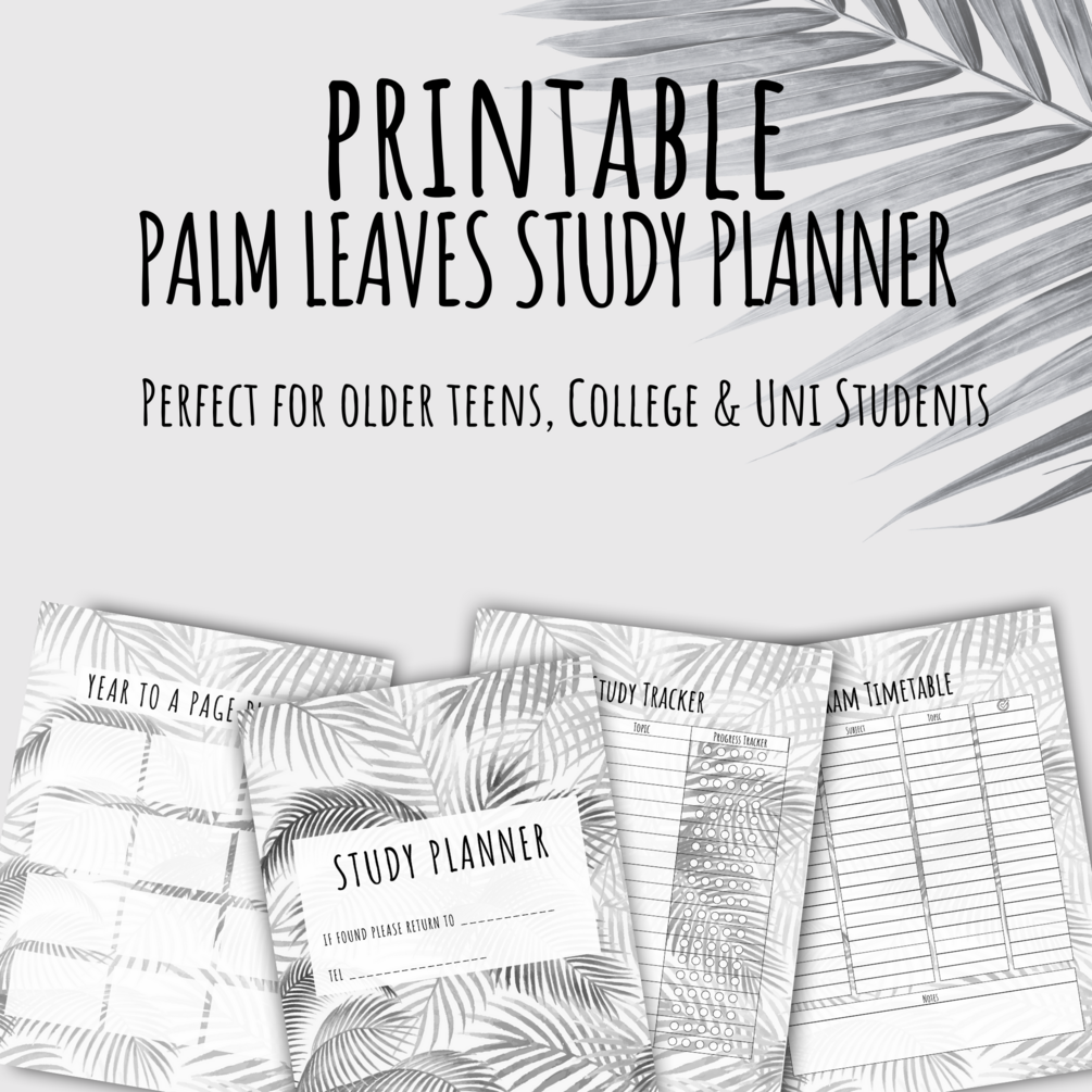 Monochrome Palm Leaves Printable Study Planner for College and