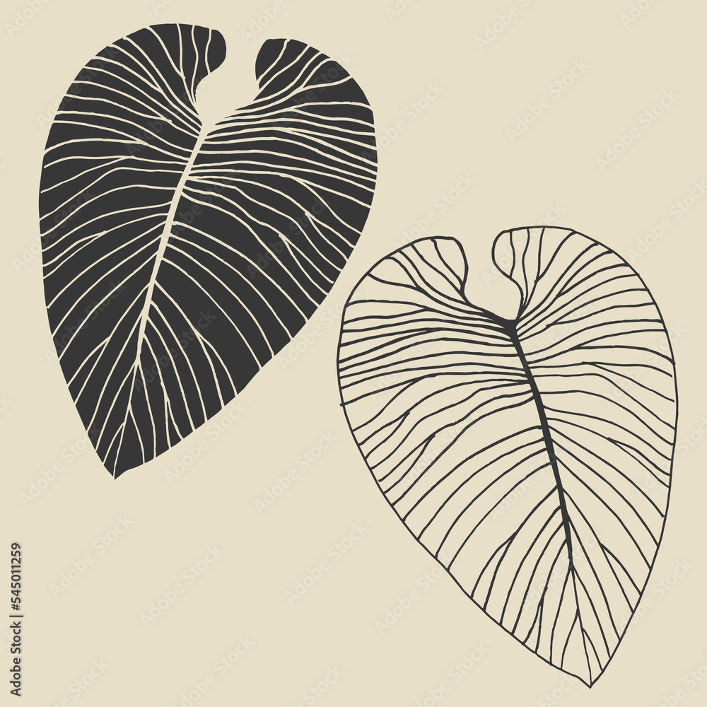 Vector Silhouette Drawing Banana Palm Leaves Stock Vector (Royalty Free
