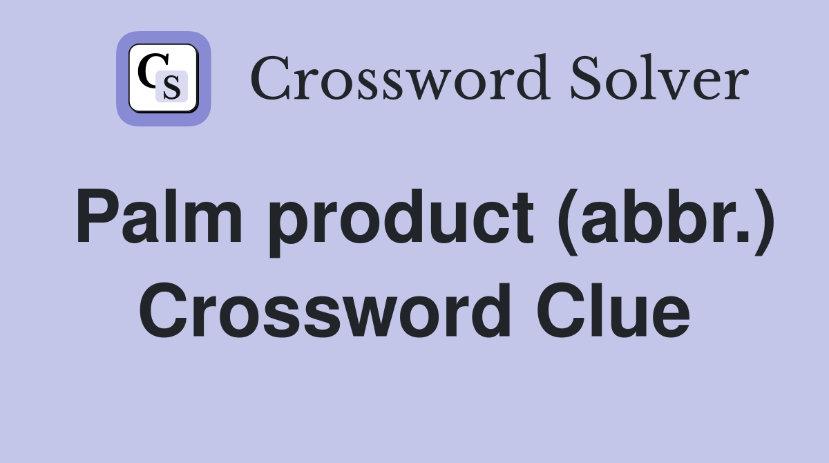 Palm product (abbr ) Crossword Clue Answers Crossword Solver
