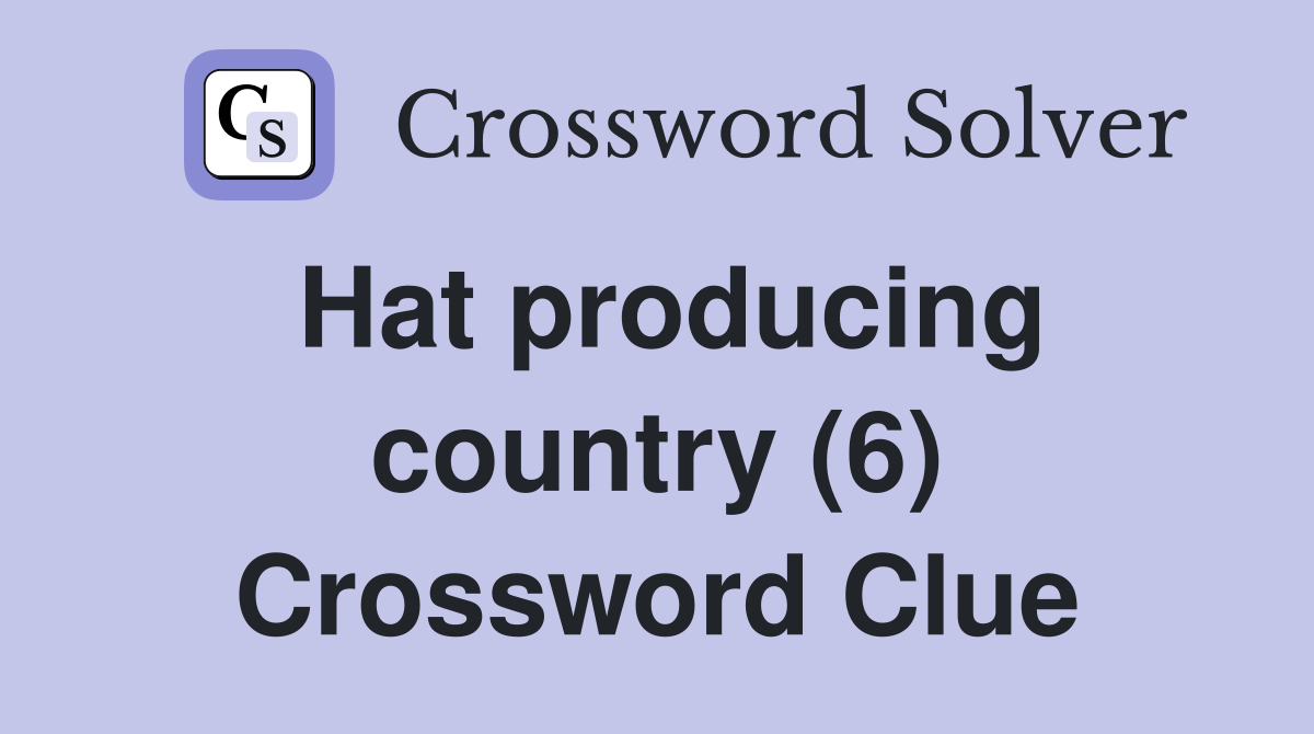 Hat producing country (6) Crossword Clue Answers Crossword Solver
