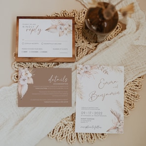 Pampas Grass Wedding Invitation Boho Wedding Invitation Set Pampas