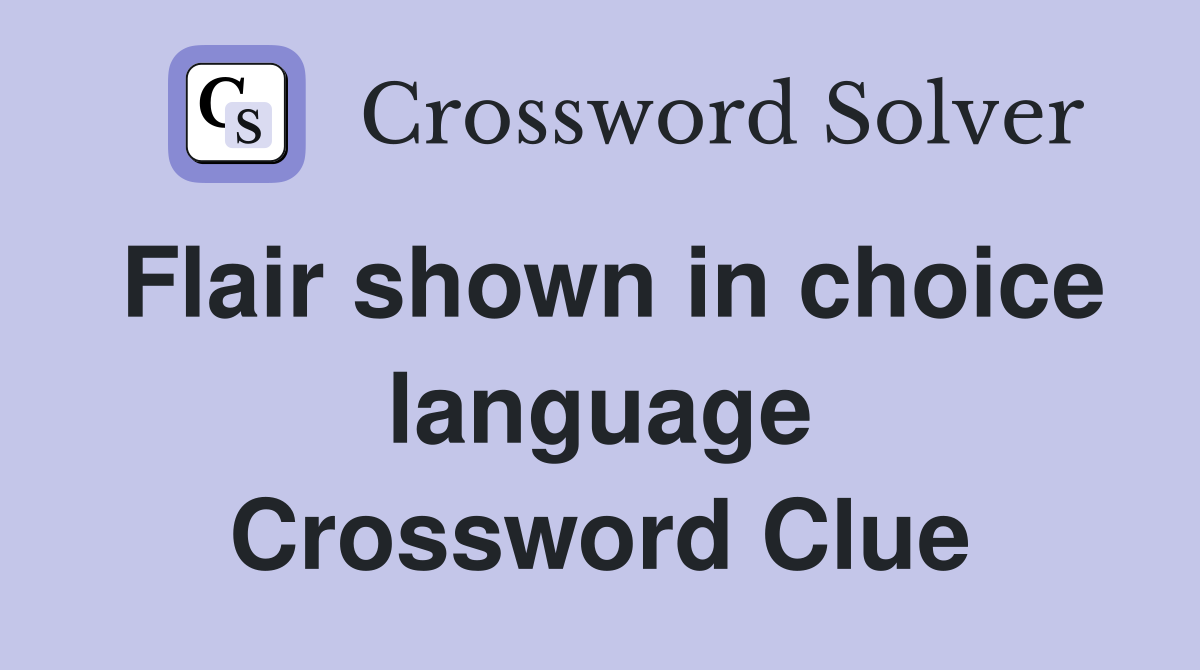Flair shown in choice language Crossword Clue Answers Crossword Solver
