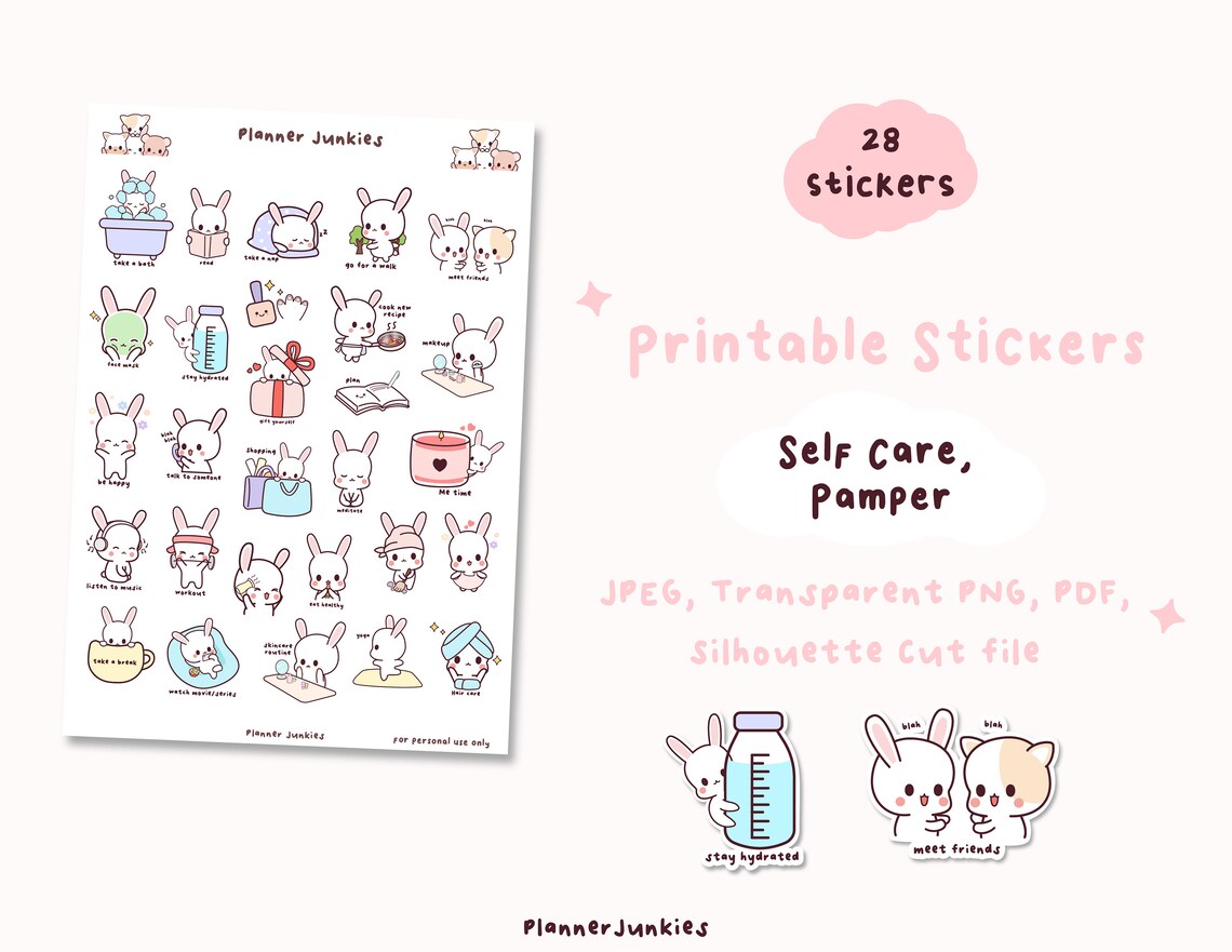 Kawaii Self Care Printable Stickers Mental Health Printable Stickers