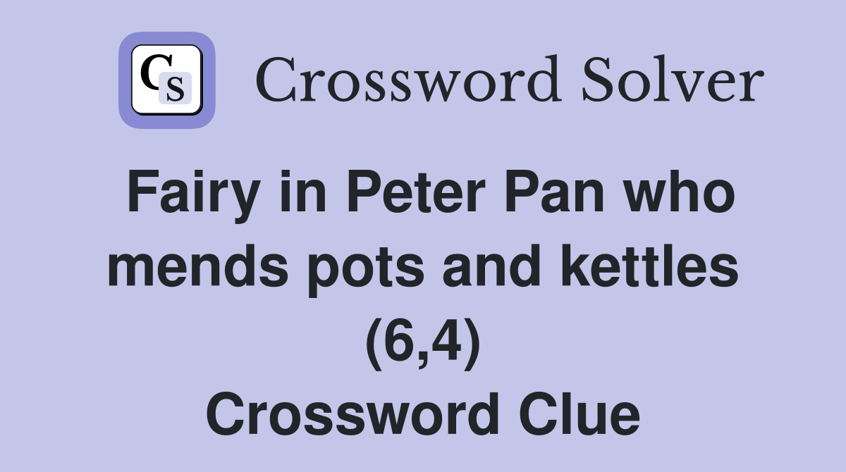 Fairy in Peter Pan who mends pots and kettles (6 4) Crossword Clue
