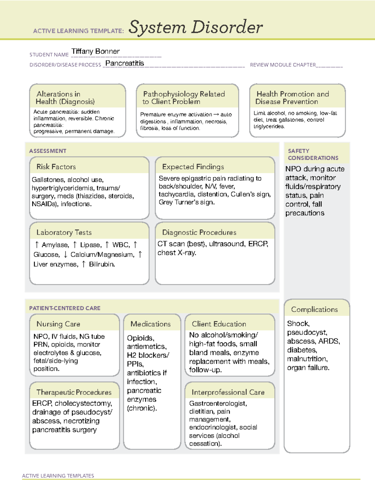 ACTIVE LEARNING TEMPLATE: Pancreatitis System Disorder Review Studocu