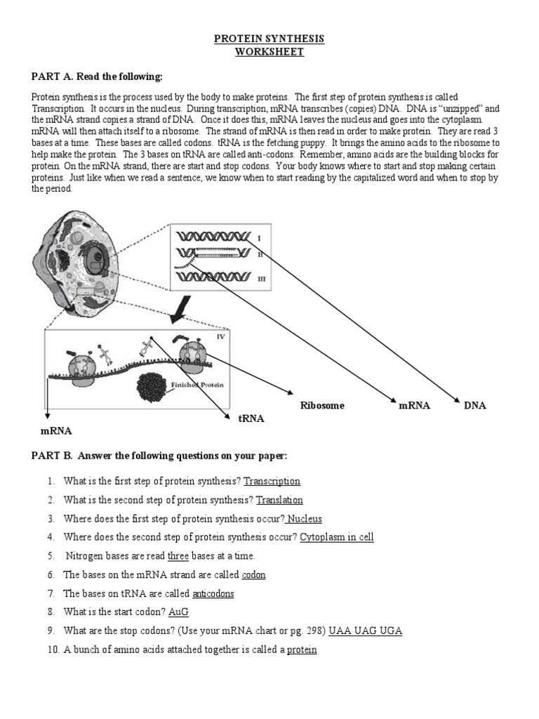Pap Protein Synthesis Worksheet Printable Calendars AT A GLANCE