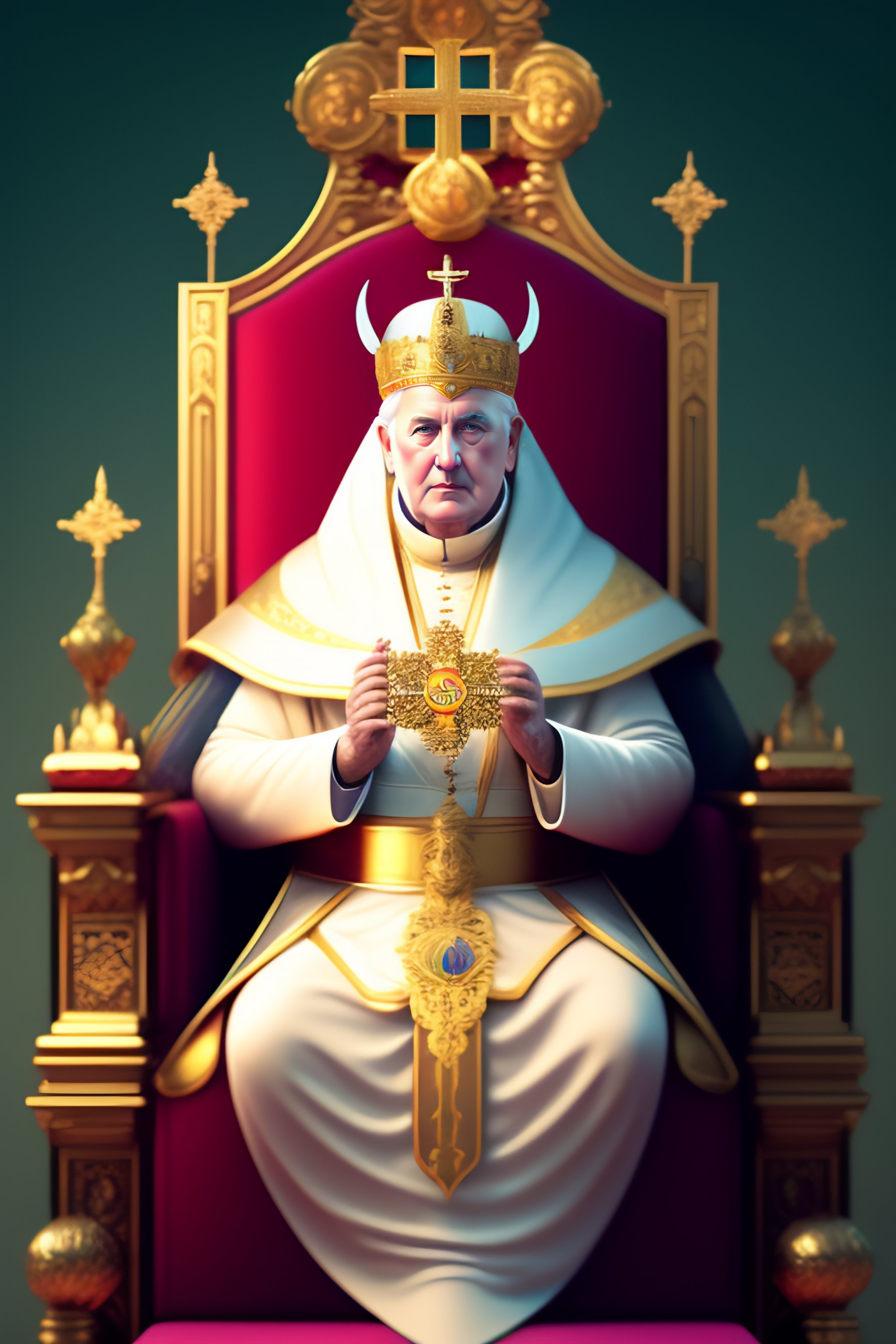 Lexica Old ancient pope wearing papal tiara sitting in a throne