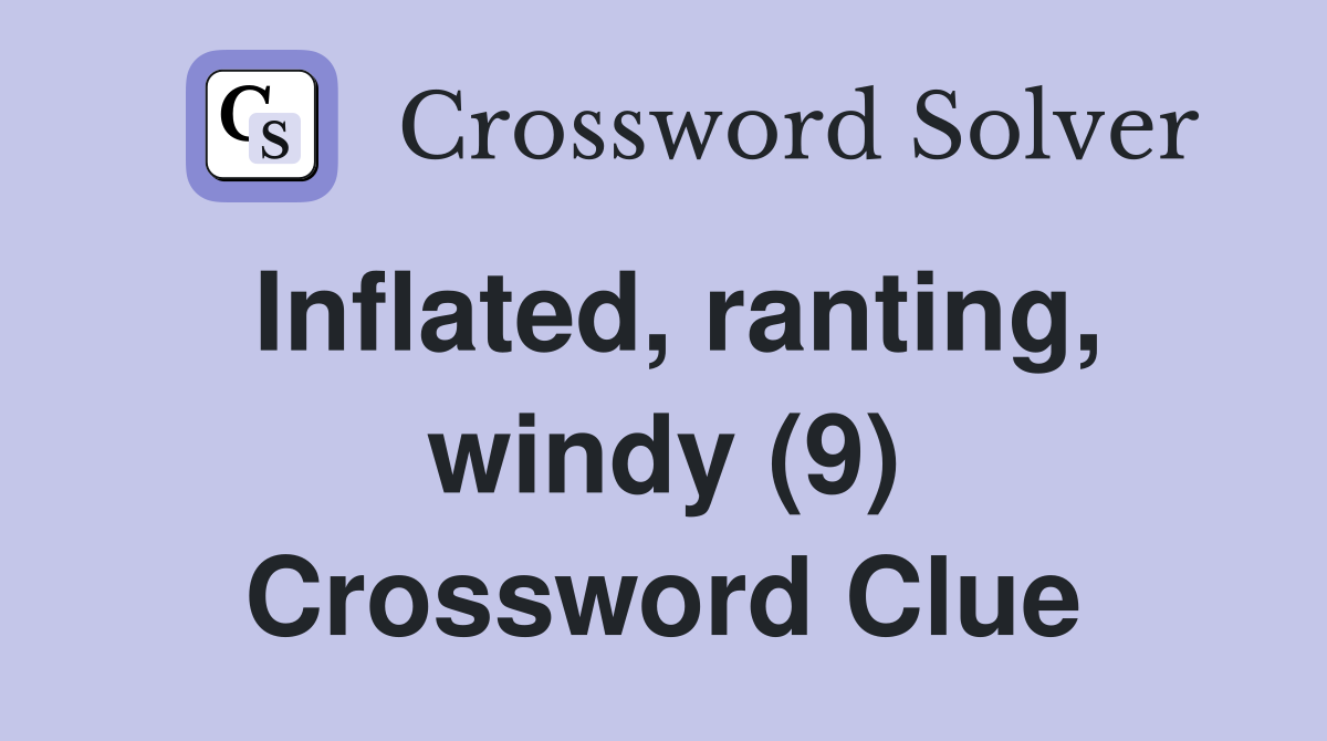 Inflated ranting windy (9) Crossword Clue Answers Crossword Solver