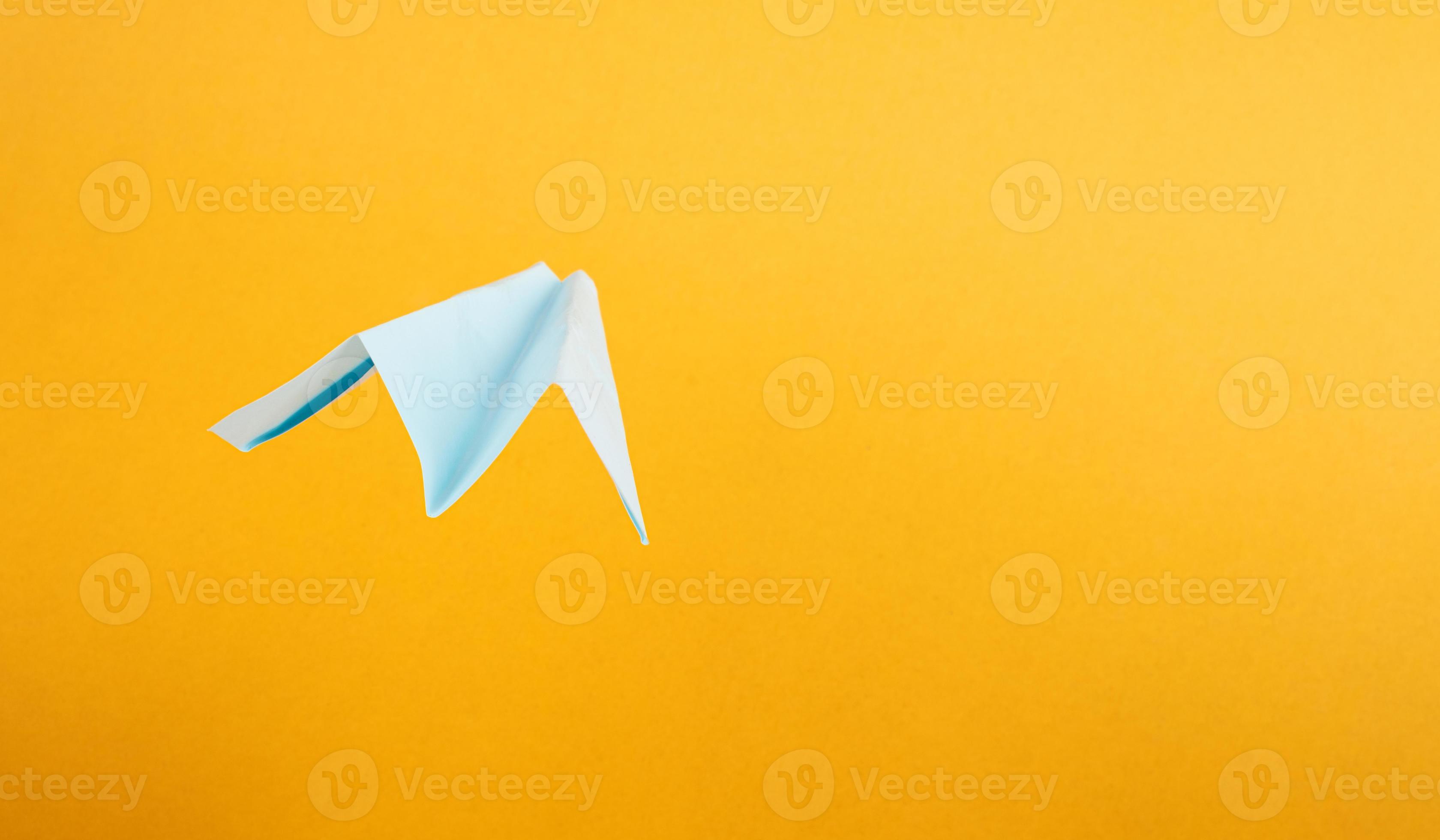 summer tourism origami paper airplane on yellow background with copy