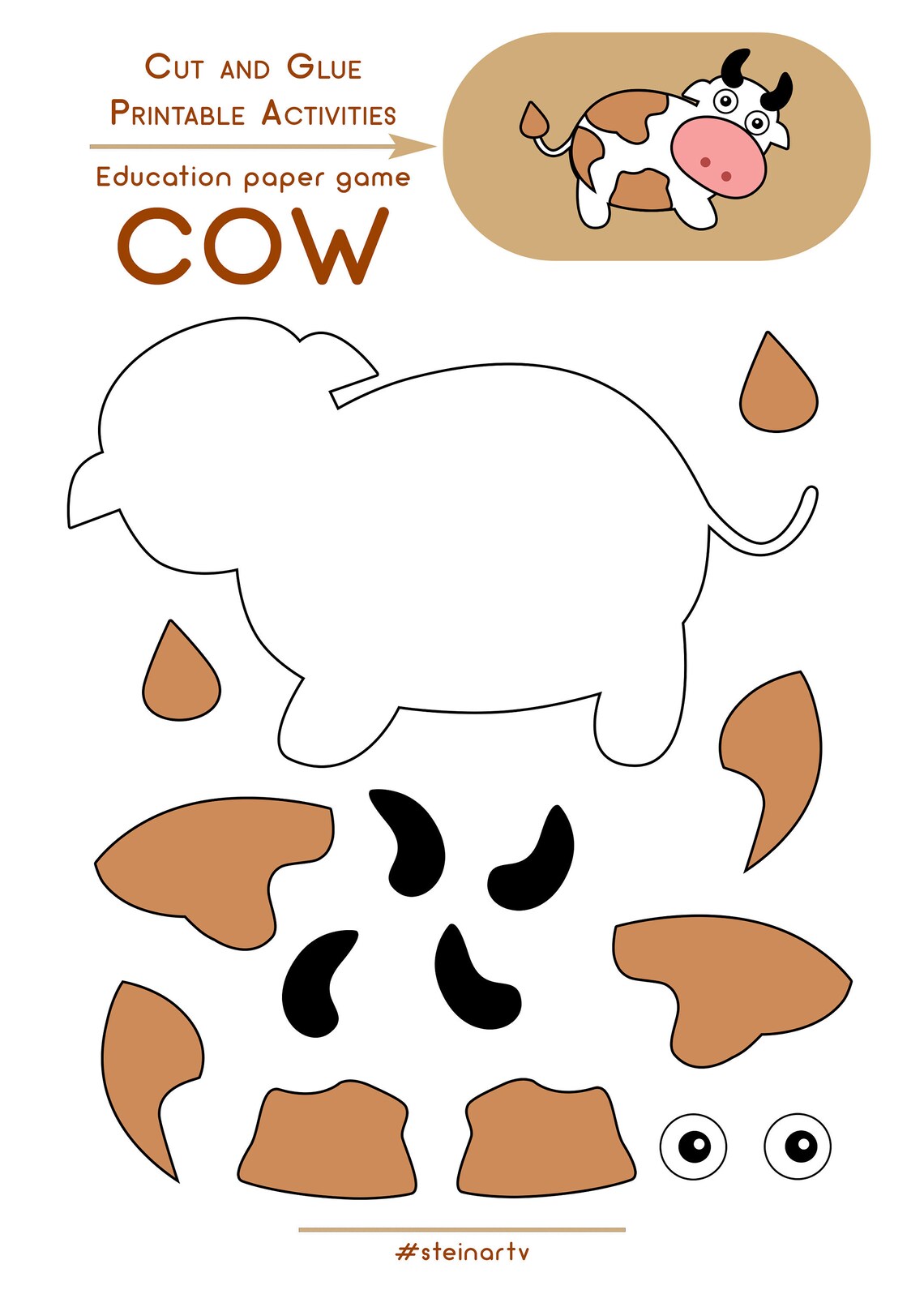 Cut and Glue Baby Cow Education Developing Worksheet Color Paper Game