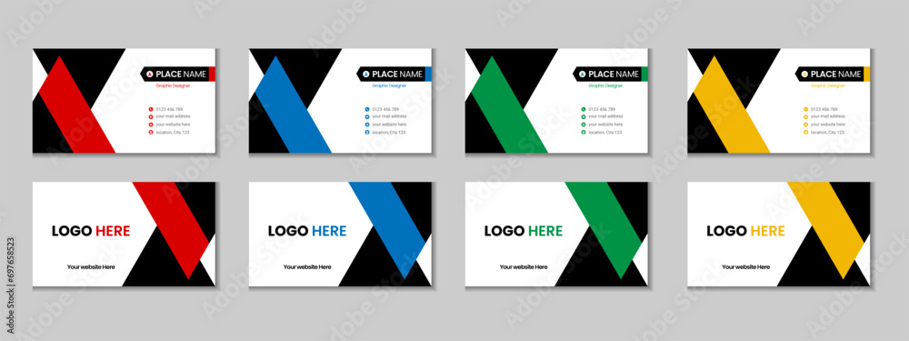 Business Card Template with Colorful Paper Cut Illustration Stock