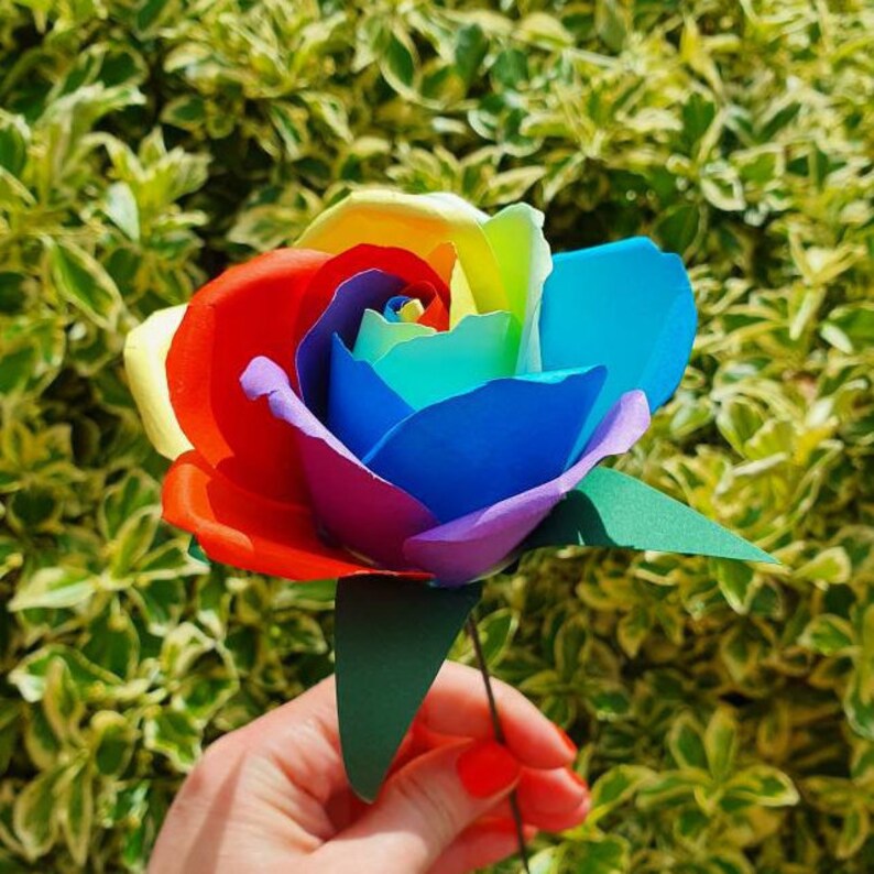 Rainbow Paper Rose Stemmed Flower Valentines Gifts Etsy