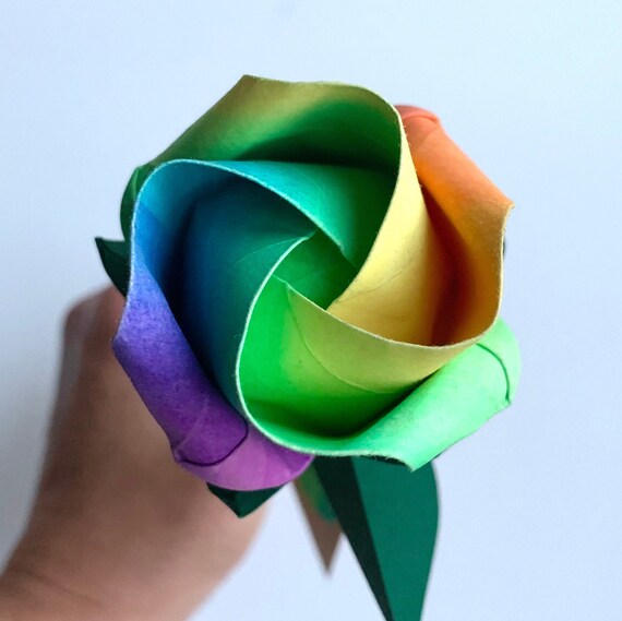 Rainbow Origami Rose as Unique Custom Anniversary Romantic Etsy