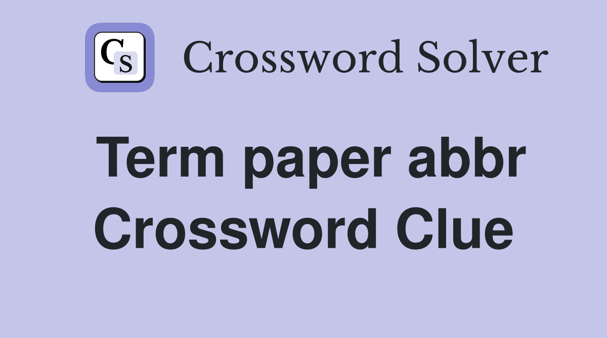 Term paper abbr Crossword Clue Answers Crossword Solver