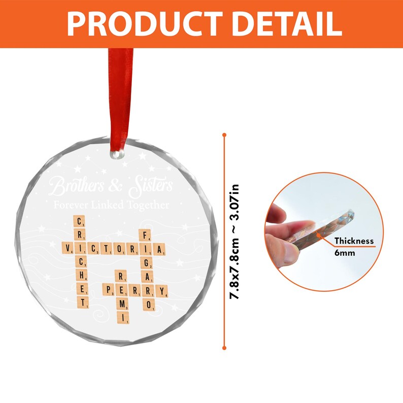 Brothers Sisters Forever Linked Together Glass Ornament Personalized