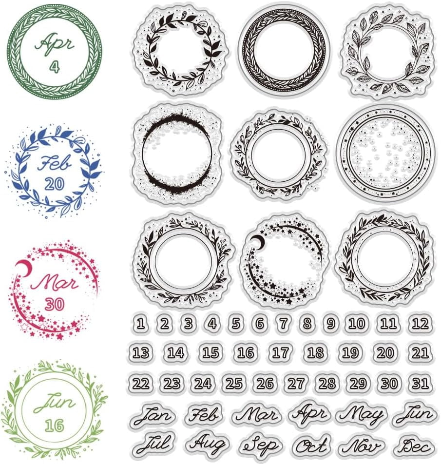 1 Sheet 52pcs Numbers Clear Stamps Set Wreath Pattern Transparent