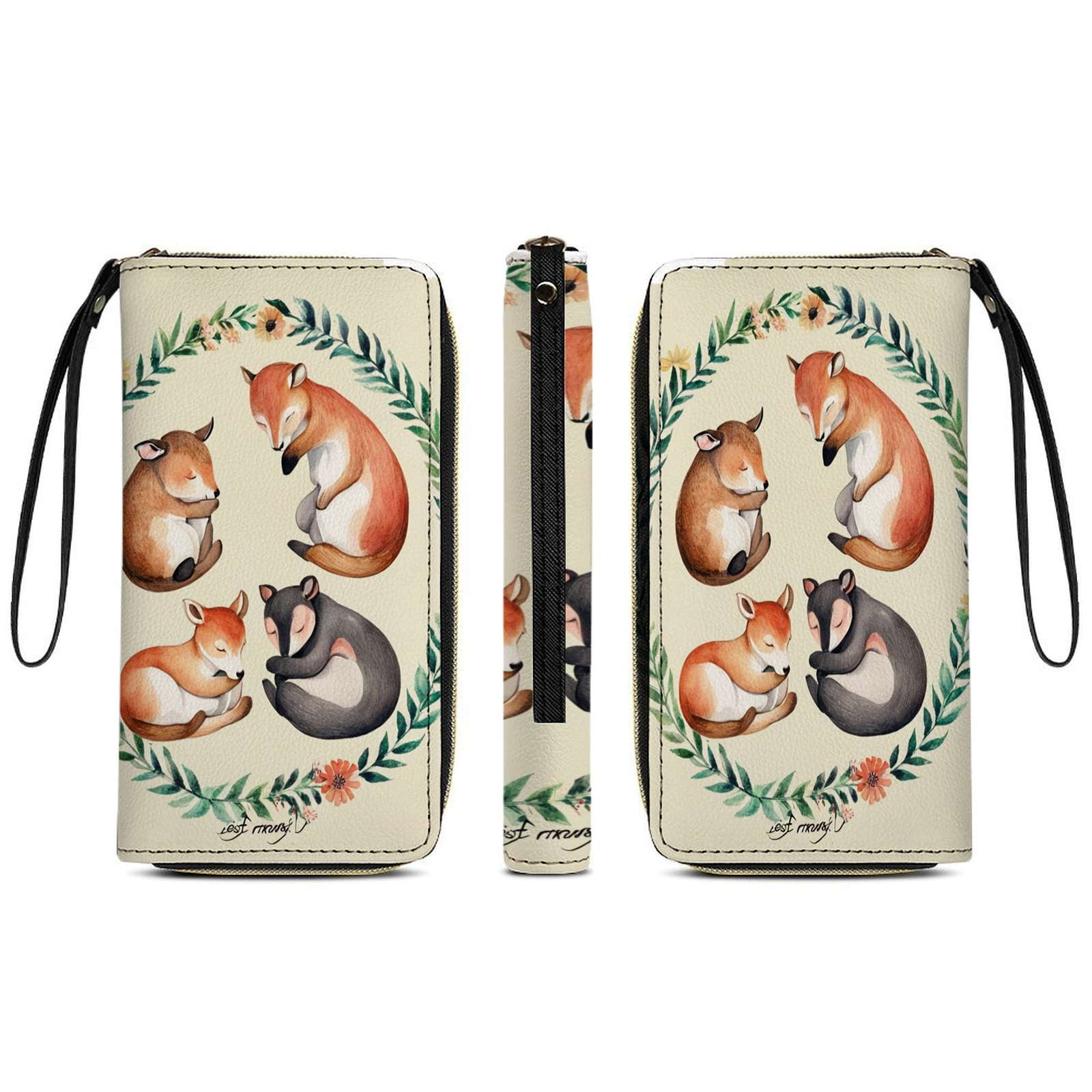 Christmas Squirrel Wreath Pattern Long Wallets For Women PU Leather