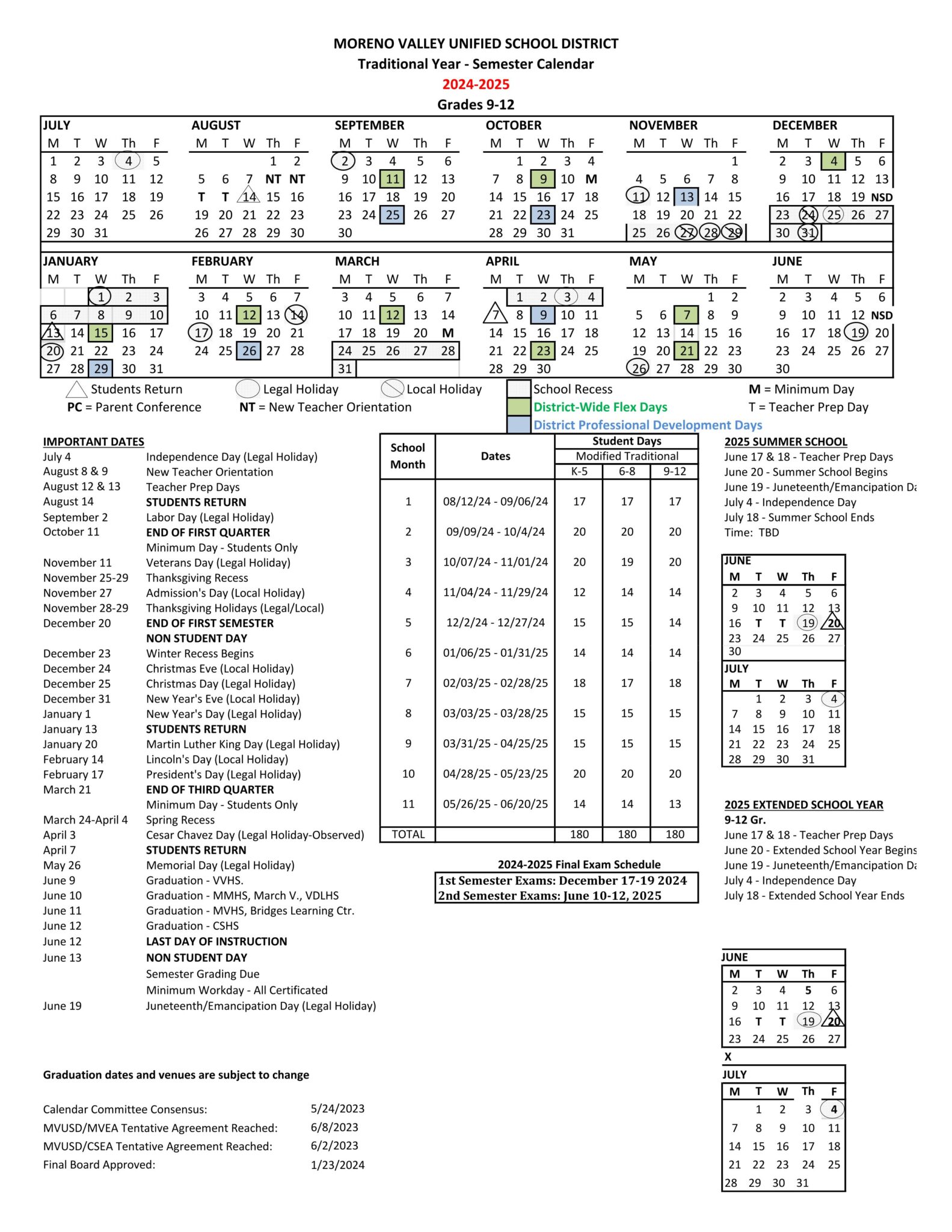 Moreno Valley Unified School District Calendar 25 26 PDF REVISED
