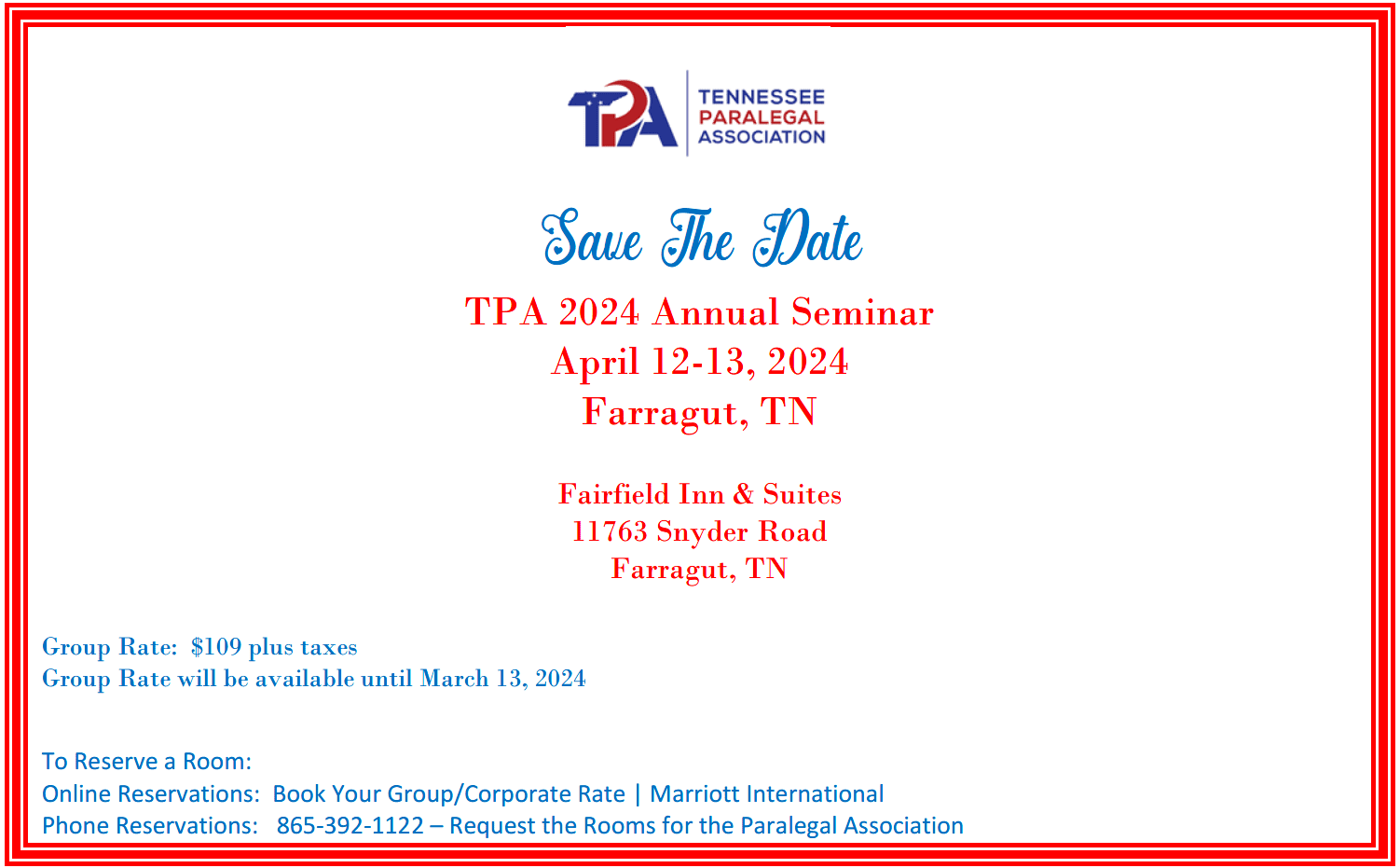 TPA 2024 Annual Seminar Tennessee Paralegal Association