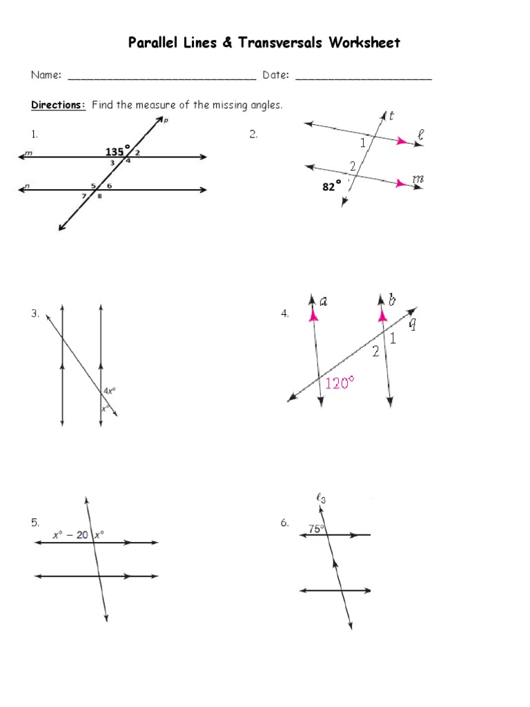 Fillable Online Worksheet on Parallel Lines and Transversals PINGPDF